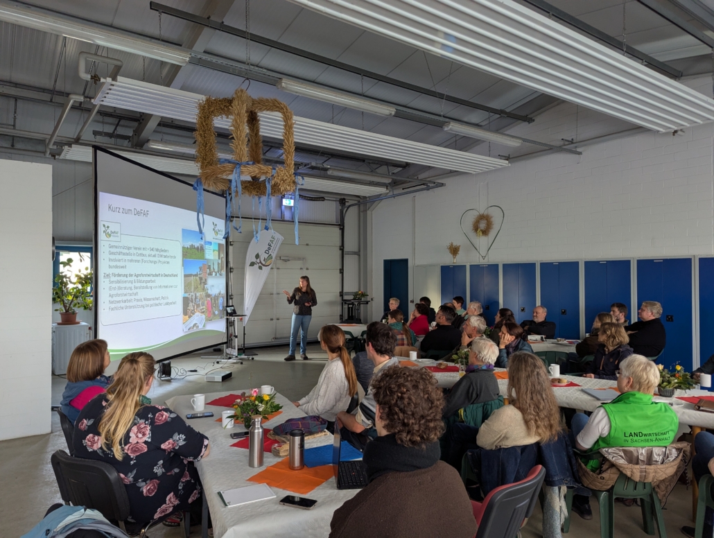 Das Tagesprogramm bot eine breite Palette an Fachvorträgen, Praxisbeispielen und Diskussionsrunden, darunter Beiträge zu rechtlichen Rahmenbedingungen, kostenlosen Fördermöglichkeiten in Sachsen-Anhalt, naturschutzfachlichen Aspekten, Erfahrungen regionaler Betriebe und aktuelle regionale Forschungsprojekte. Besonders geschätzt wurde die praxisnahe Programmgestaltung und der Erfahrungsaustausch mit Akteur:innen, die bereits Agroforstsysteme im Betrieb integriert haben.