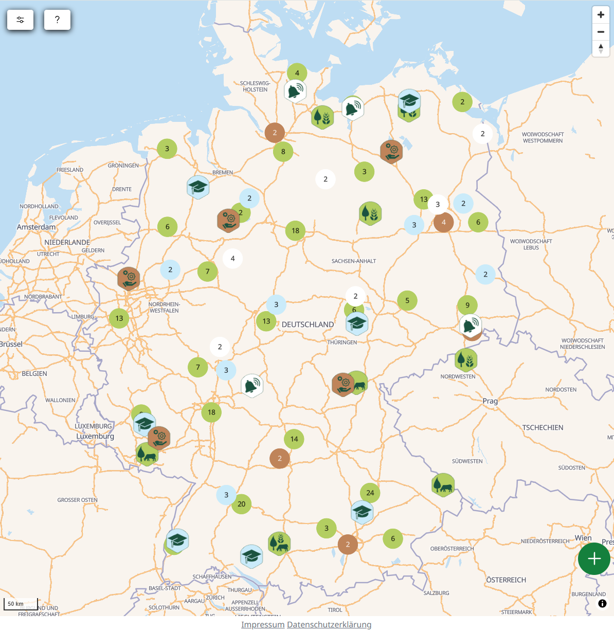Mit Ihrer Hilfe erreichen wir unser gemeinsames Ziel, eine möglichst umfassende Datenbank zur Agroforstwirtschaft in Deutschland aufzubauen. Eine aktuelle Übersicht zu den eingetragenen Flächen (Stand 31.12.2024) finden Sie hier.