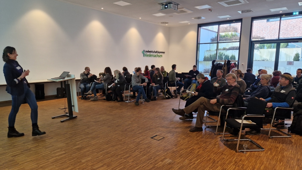 Isabelle Frenzel präsentierte im Rahmen des ersten Bausteins „Veranstaltung und Dialog zu Agroforstwirtschaft“ die aktive Teilnahme an verschiedenen Veranstaltungen während der Projektlaufzeit. Darüber hinaus wurden im Projekt die Agroforst-Praxistage am 26. und 27. Februar 2025 in Hannover organisiert.