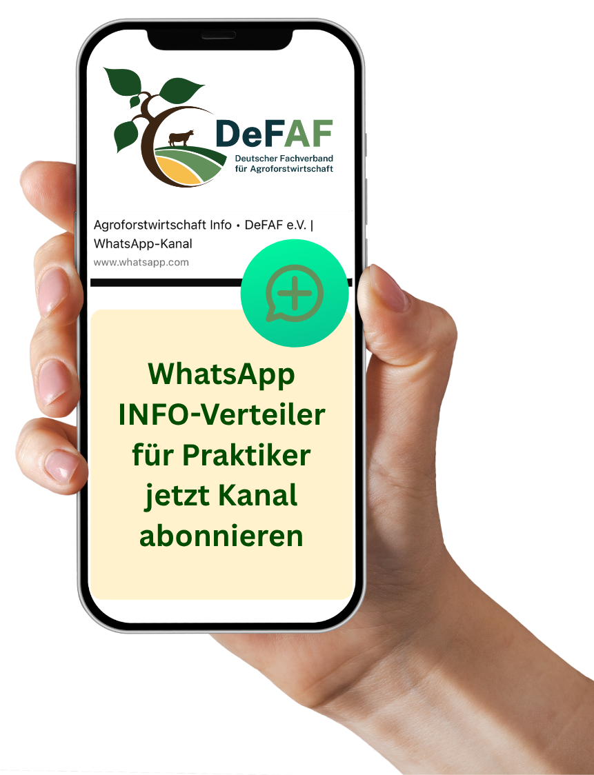 Über sein großes Agroforst-Expertennetzwerk arbeitet der DeFAF e.V. mit zahlreichen Unternehmen und Verbänden sowie Behörden und politischen Entscheidungsträgern zusammen. Der DeFAF ist zudem die offizielle deutsche Vertretung der europäischen Agroforst Förderation (EURAF). Der DeFAF e.V. ist Ausrichter des größten deutschen Forums Agroforstsysteme und bietet Fortbildungen im Rahmen der Agroforst-Akademie an.