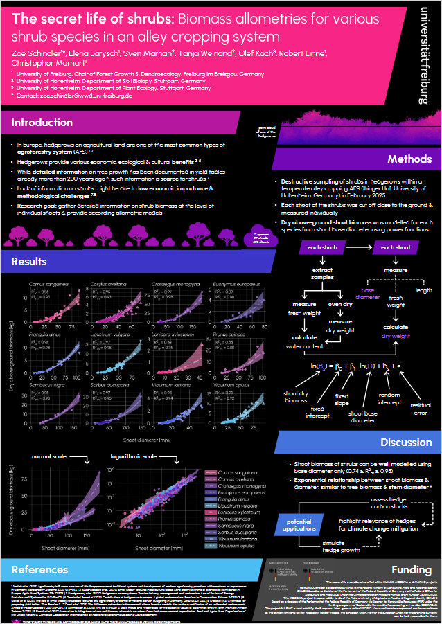 Das Versuchsdesign wurde in Anlehnung an den Leitfaden ‚Bodenkundliche Untersuchungen in streifenförmigen Agroforstsystemen‘ des DeFAF e.V. entwickelt. Das Julius Kühn-Institut (JKI) und die Justus-Liebig-Universität Gießen (JLU) erarbeiteten das Versuchsdesign gemeinsam, da auf denselben Flächen und an denselben Probenahmepunkten beprobt wird.