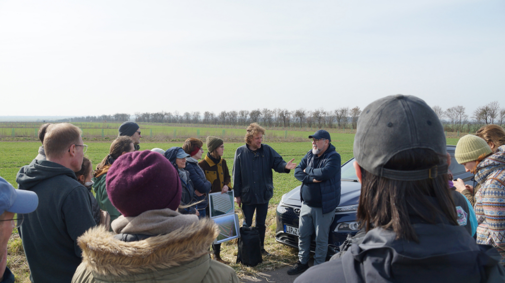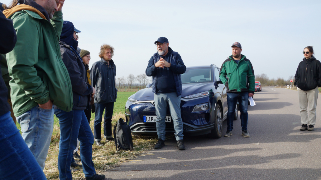 Während der Exkursion entstand ein reger Austausch zwischen den Akteuren vor Ort und den Teilnehmenden. Vielen Dank an die Referentin und Referenten Thomas Pöge (Bürgermeister Gemeinde Thallwitz), Alexander Krebs (Böhlitzer Agrar e. G.), Clara Thoma (IfaS, Projekt AgroFLOW) und Tobias Peschel (Lignovis GmbH) für den Einblick in dieses zukunftsfähige Projekt.